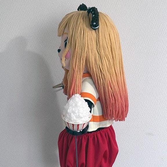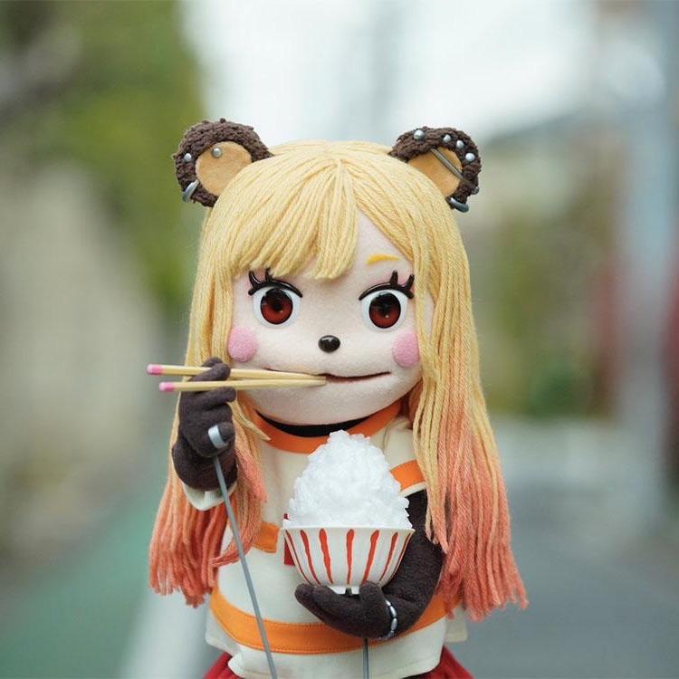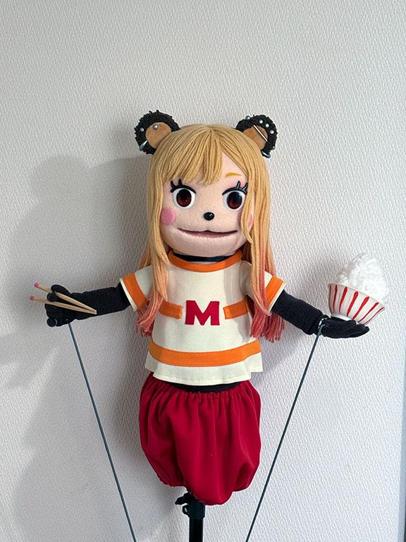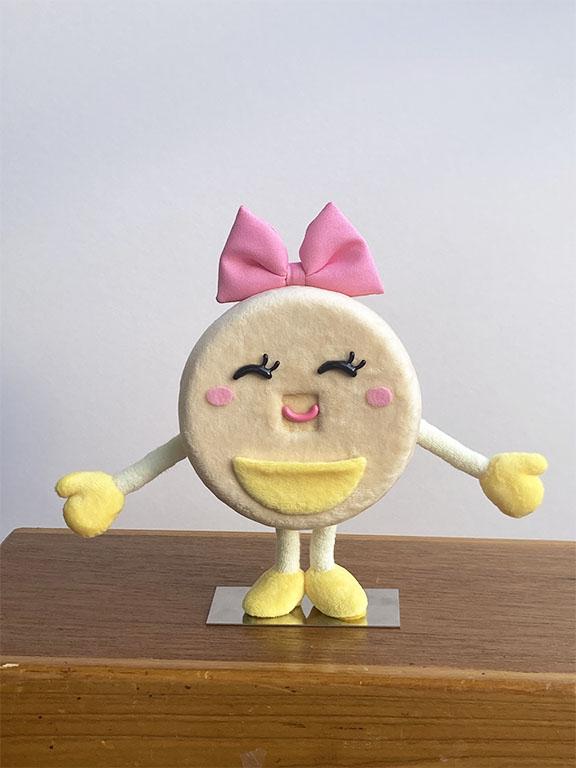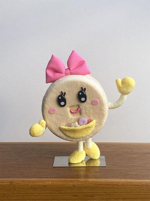 文銭最中をモチーフにしたキャラクターのモナちゃん。ポーズ人形。